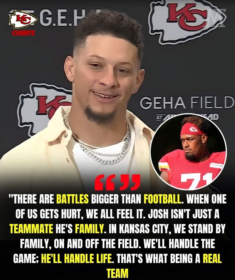 No cameras. No reporters. Just Patrick Mahomes showing up when it mattered most.After Josh Simmons hit rock bottom, Mahomes stepped in — arranging help, checking on him late at night, and reminding everyone that family comes first. “There are battles bigger than football,” he told his teammates, fighting back tears.