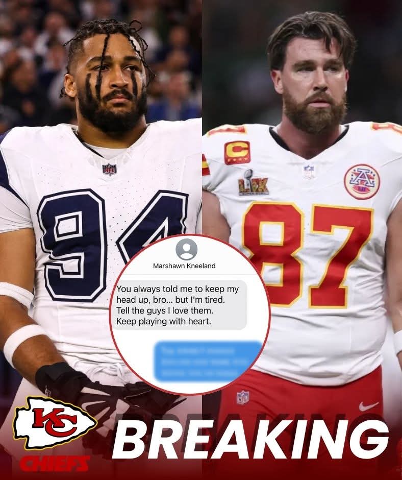 The NFL community is in mourning after shocking new details emerged about the final hours of Dallas Cowboys defensive end Marshawn Kneeland. Reports have surfaced that Kneeland sent a final text message to Kansas City Chiefs star Travis Kelce just hours before his death, and its contents are leaving fans and teammates shaken.