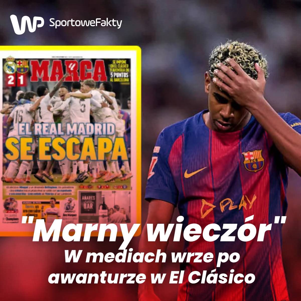 “Marny wieczór – skuteczny Real Madryt zgarnął Klasyk golami Mbappe i Bellinghama przeciwko Blaugranie bez ofensywy. Carvajal zrugał Lamine’a i wywiązała się przepychanka zakończona wyrzuceniem Łunina oraz sześcioma upomnieniami” – napisano.