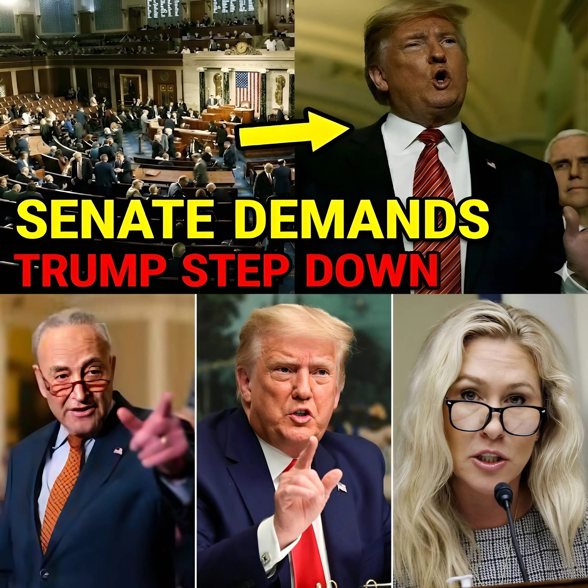 BOMBSHELL: T̄R̄UMP SCREAMS as SENATE DEMANDS STEP DOWN NOW — White House Chaos Ignites as Betrayals Explode and Impeachment Whispers Escalate to Breaking Point! ⚡ In a shocking turn of events, what started as a tense Senate session detonated into outright rebellion when lawmakers unleashed a blistering demand for President T̄R̄UMP’s resignation, leaving the chamber in stunned silence amid whispers of irreversible fallout. T̄R̄UMP’s reaction reportedly boiled over with raw fury, while his allies scrambled in denial mode—insiders claim leaked memos hint at frantic Oval Office huddles, fueling speculation of deeper fractures within his inner circle as the base begins to waver. The meltdown exploded online, fans can’t believe the Senate’s bold stand, reportedly trending across platforms as calls for action surge nationwide. The details are worse than the headlines read before this changes…see more