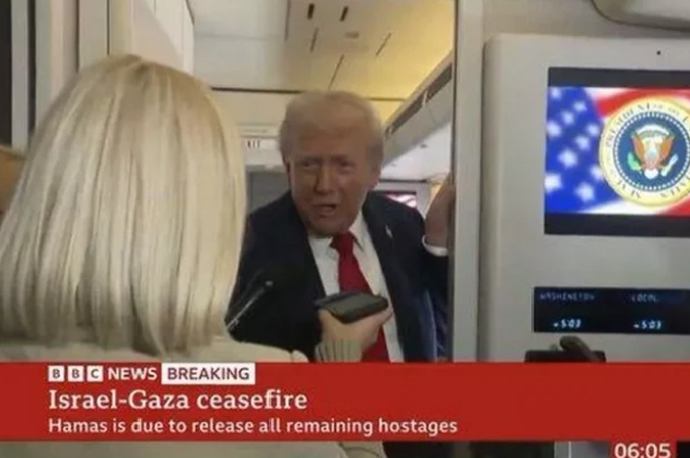 US President Donald Trump had a heated exchange with a reporter on BBC Breakfast, live from Air Force One, amidst the release of Israeli hostages from Gaza. The press, including BBC correspondents, were present as Trump fielded a flurry of questions.