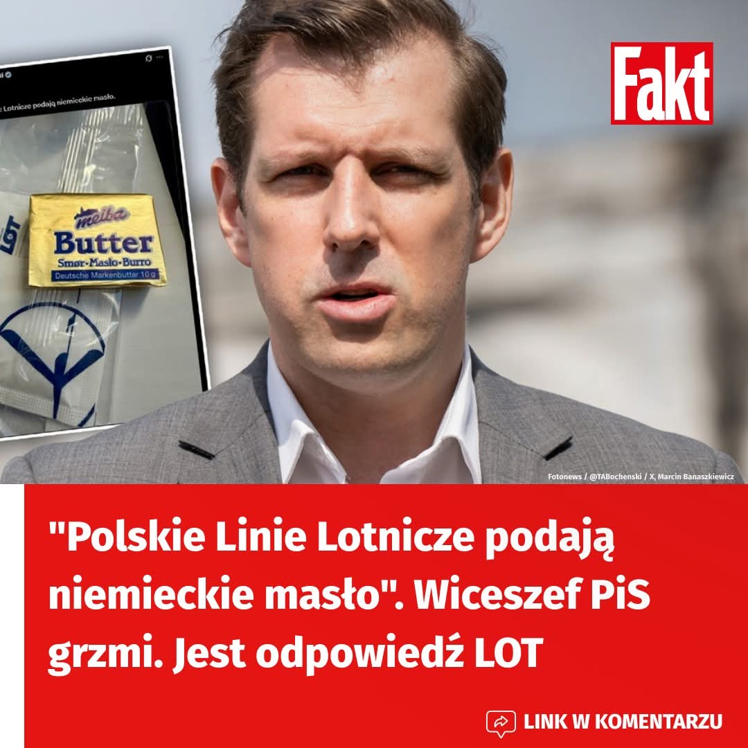 Polityczna burza wokół niemieckiego masła serwowanego na pokładzie samolotu Polskich Linii Lotniczych LOT wybuchła po tym, jak europoseł PiS Tobiasz Bocheński opublikował zdjęcie kostki masła z niemieckim napisem “Deutsche Markenbutter” i skrytykował rząd Donalda Tuska za “niemieckie wpływy” w narodowym przewoźniku. W odpowiedzi LOT wyjaśnił, że na trasach z Niemiec korzysta z lokalnych dostawców cateringowych, natomiast na rejsach z Warszawy serwuje wyłącznie polskie masło.