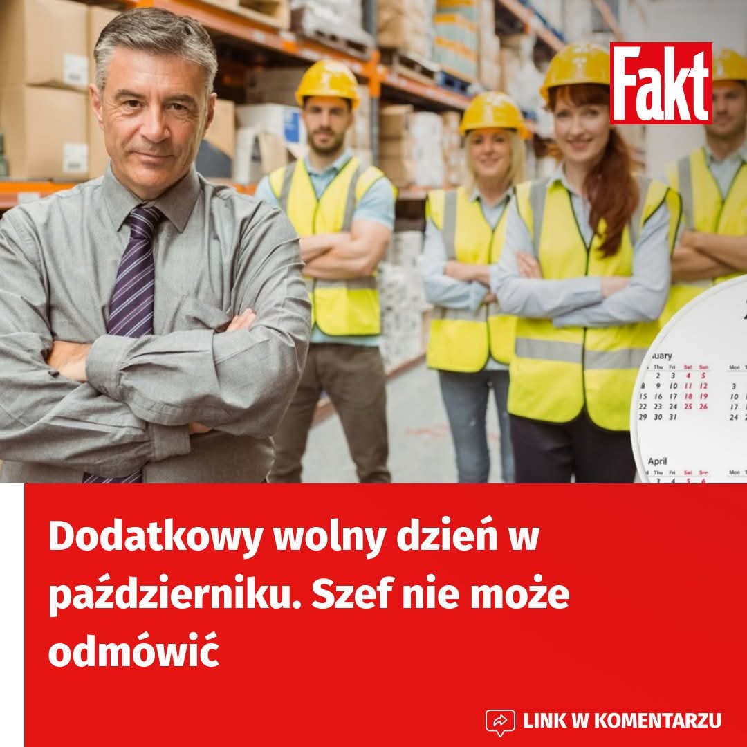 Pracownicy mogą cieszyć się dodatkowym dniem wolnym w październiku lub listopadzie. To pracodawca zdecyduje, kiedy go wyznaczyć