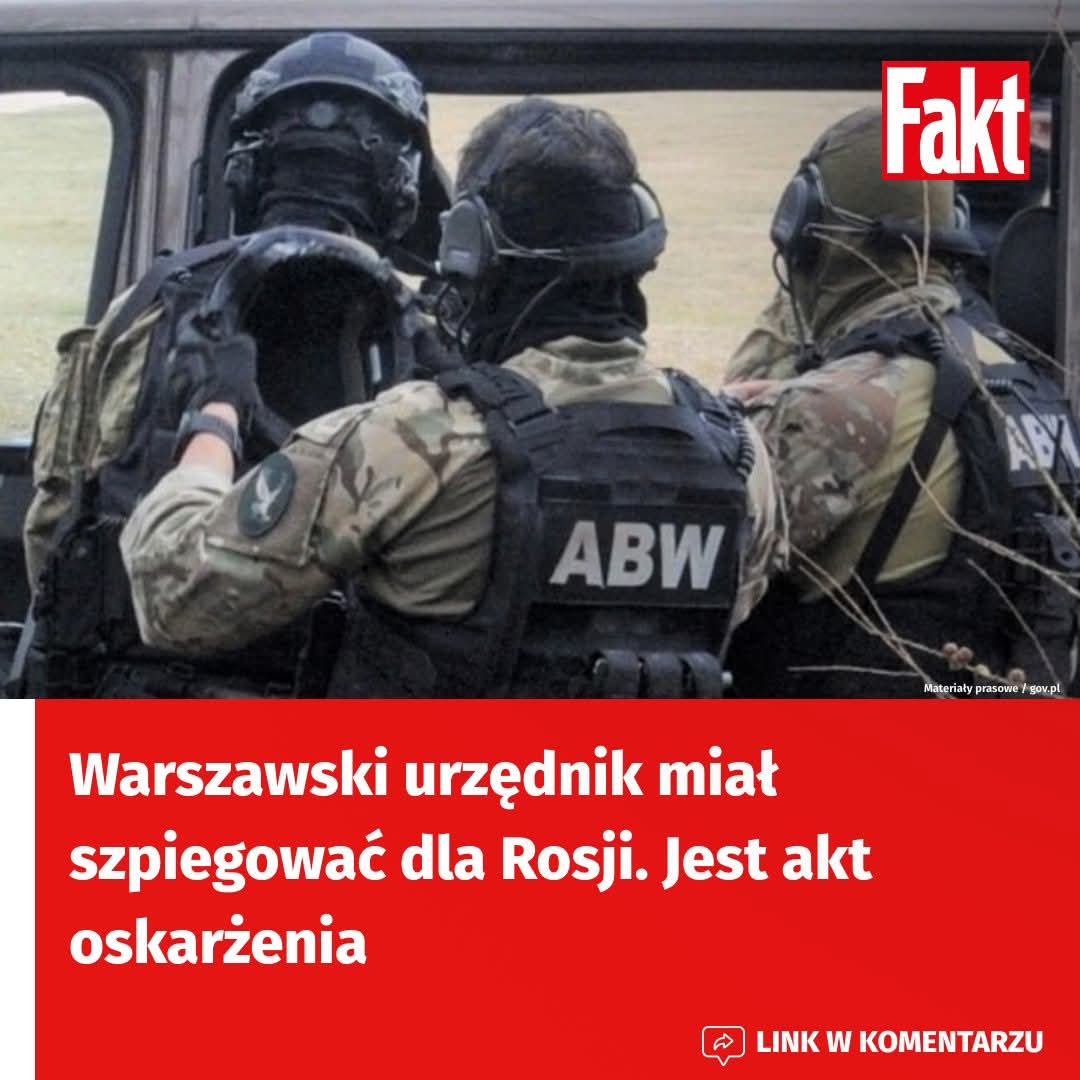 Prokuratura skierowała do sądu akt oskarżenia przeciwko Tomaszowi L. — poinformowała ABW. Mężczyzna miał szpiegować dla Rosjan, pracując jako archiwista w warszawskim ratuszu. Służby ustaliły, że przez pięć lat przekazywał rosyjskim służbom dokumentację służbową i informacje, które “mogły wyrządzić szkodę Rzeczypospolitej Polskiej”.