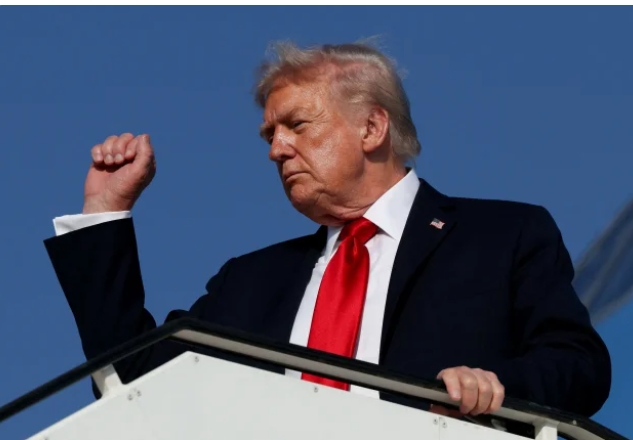 President Donald Trump boards Air Force One on Oct. 13, 2025, en route to Sharm El-Sheikh, Egypt, to attend a world leaders’ summit on ending the Gaza war, amid a U.S.-brokered prisoner-hostage swap and ceasefire deal.